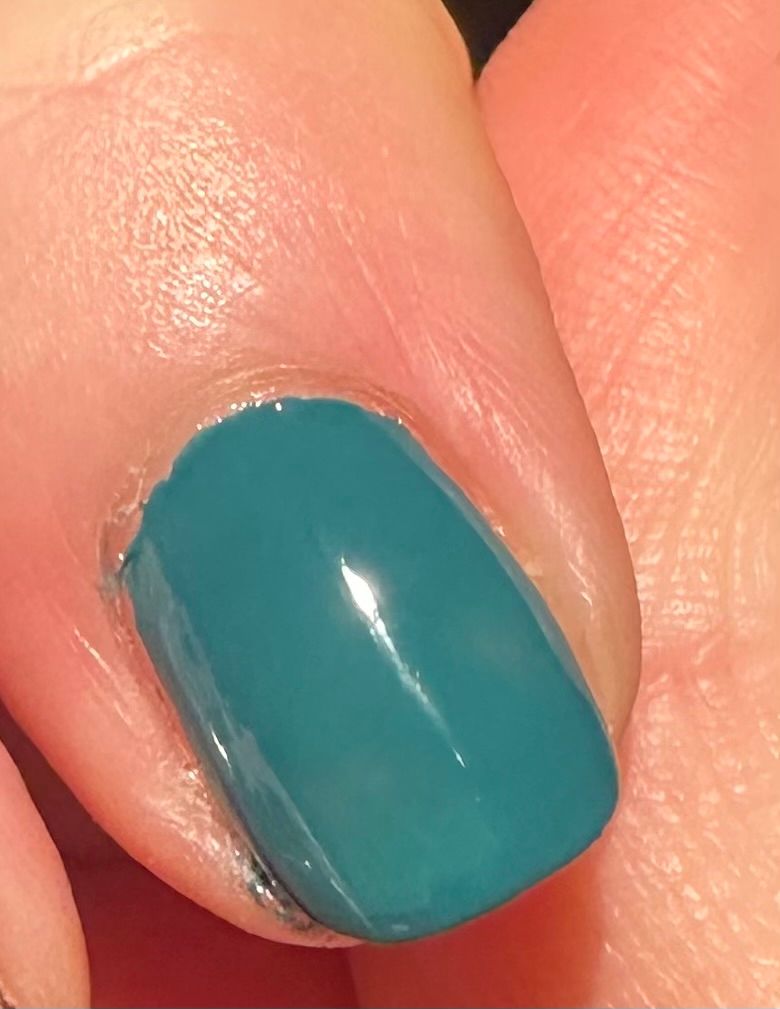This one is great. Almost one coat coverage, two for fully opaque but you can get away with one in a pinch. Great formula, self levels nicely. Shiny enough if you haven’t got time for top coat but better with QDTC. Lovely colour.